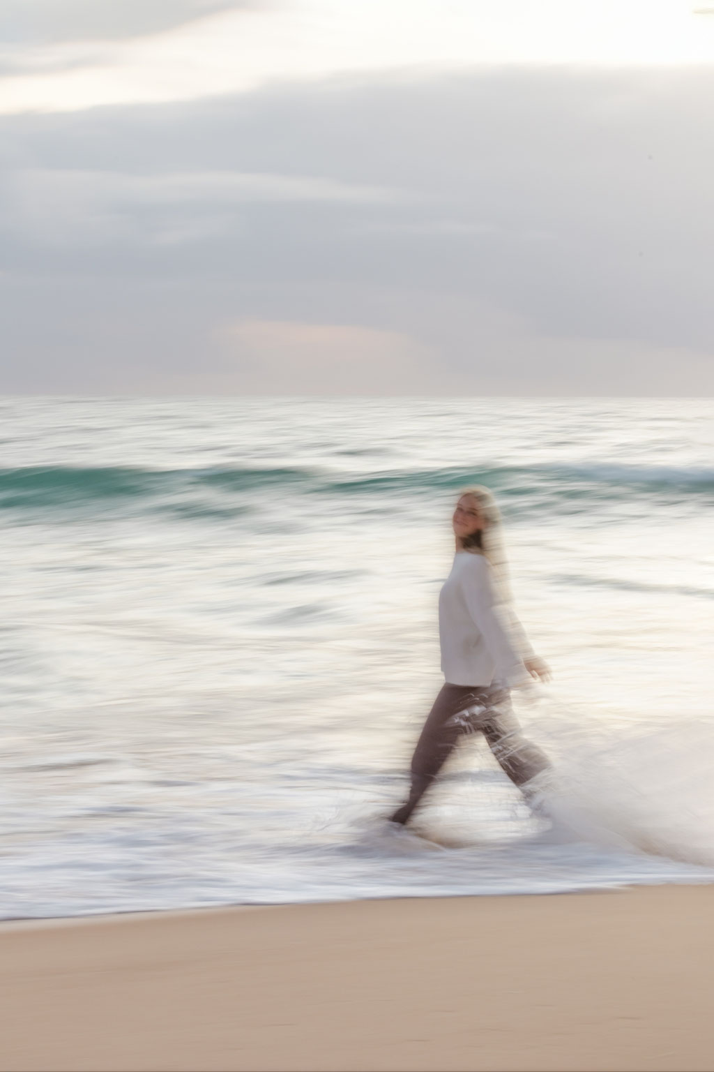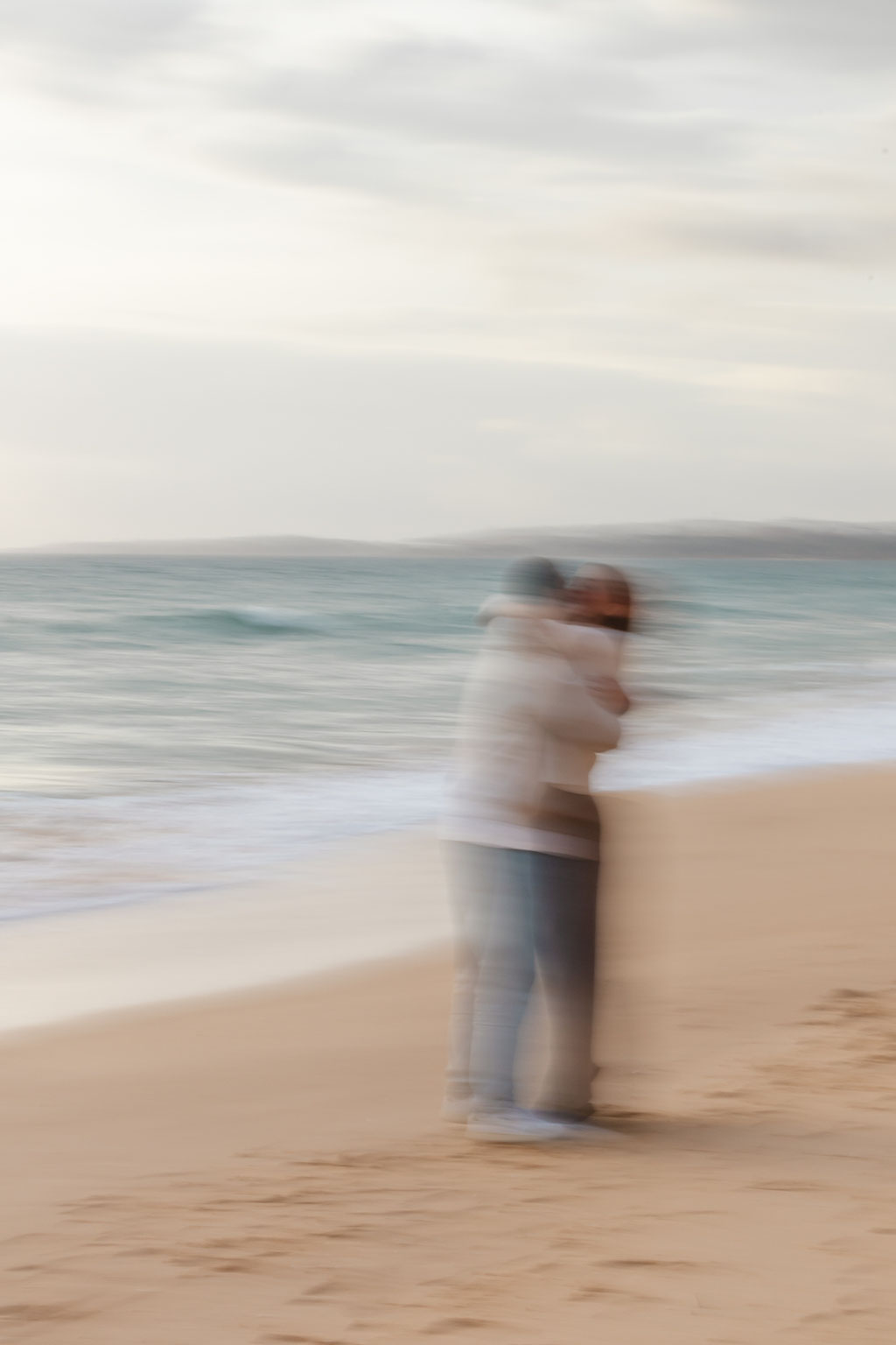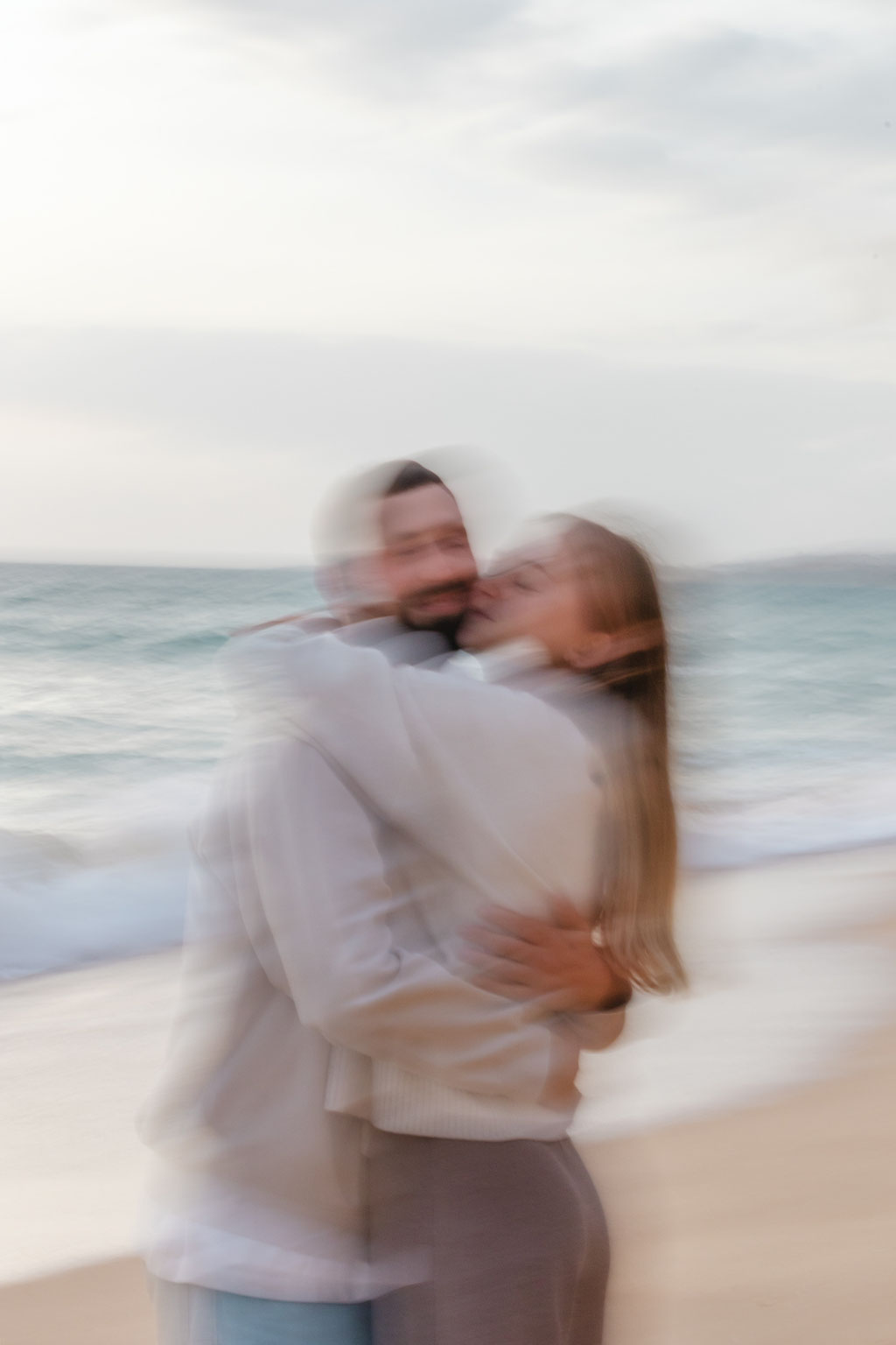 Die beiden, selbst Weltbummler wie ich, waren seit acht Monaten mit ihrem liebevoll ausgebauten LT-Bus auf Reisen. Sie haben Abenteuer erlebt, Freiheit gespürt, sind gewachsen – innerlich und gemeinsam. Als wir uns begegneten, waren sie auf dem Rückweg ihrer Reise. Doch was wir in diesem magischen Abendlicht am Meer festgehalten haben, war mehr als ein Abschied – es war ein stilles Feiern ihrer gemeinsamen Reise, ihrer Liebe, ihres Daseins.