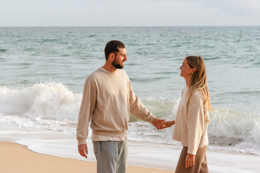 Wenn zwei Menschen sich begegnen – nicht nur mit Blicken, sondern mit dem Herzen – dann entstehen Bilder, die weit mehr sind als bloße Momentaufnahmen. Dieses Paarshooting am Strand Portugals war genau das: Eine echte Seelenverbindung.